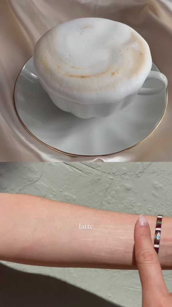 isononyl isononanoate, c12-15 alkyl benzoate, tapioca starch, euphorbia cerifera (candelilla) wax, copernicia cerifera (carnauba) wax, theobroma cacao (cocoa) seed butter, helianthus annus (sunflower) seed oil, arnica montana flower extract, aqua (water), polyhydroxystearic acid, ascorbyl palmitate, polymethylsilsesquioxane, tocopheryl acetate, tocopherol (vitamin e). May contain +/- CI 77491, CI 77492, CI 77499 (iron oxides), CI 77891 (titanium dioxide).