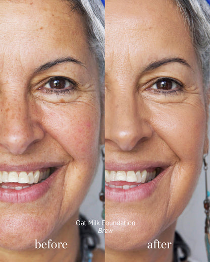 Brew - dark toffee. Our best-selling & beloved oat milk foundation features star natural ingredients such as oat milk, peach & vitamin E to help nourish your skin throughout the day. This foundation is for a fresh, dewy finish that melts effortlessly into your skin. This foundation is buildable, lightweight and free from impurities so your skin is still able to breathe. No cakey faces here! Available in 8 shades designed to suit a wide range of skin tones. While our shades may look minimal, they are all extremely versatile! Each shade suits a multitude of skin tones and subtle variations. If you are unsure which is the right one for you, please contact us and we will guide you in the right direction. Try our shade finder now!