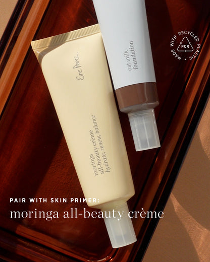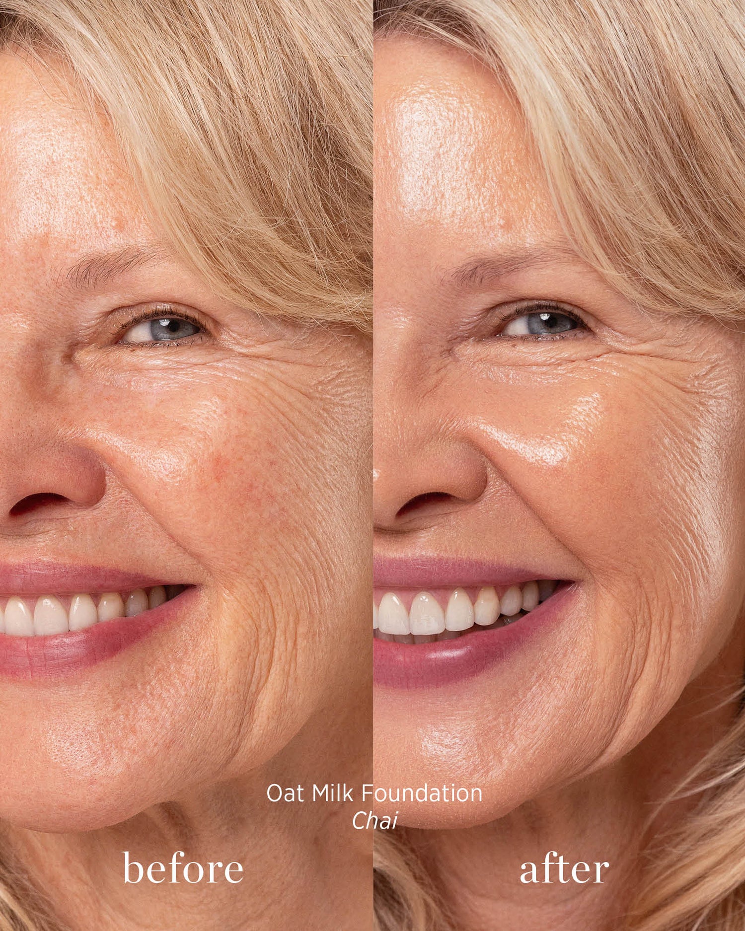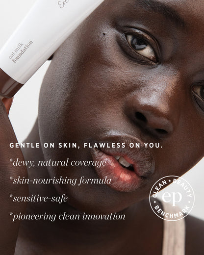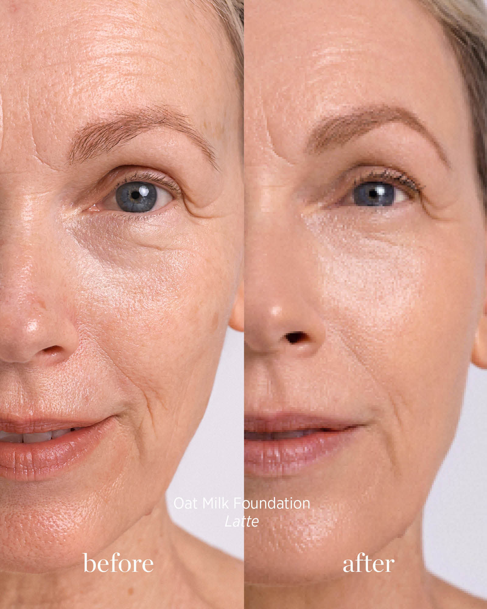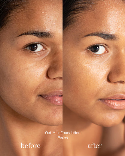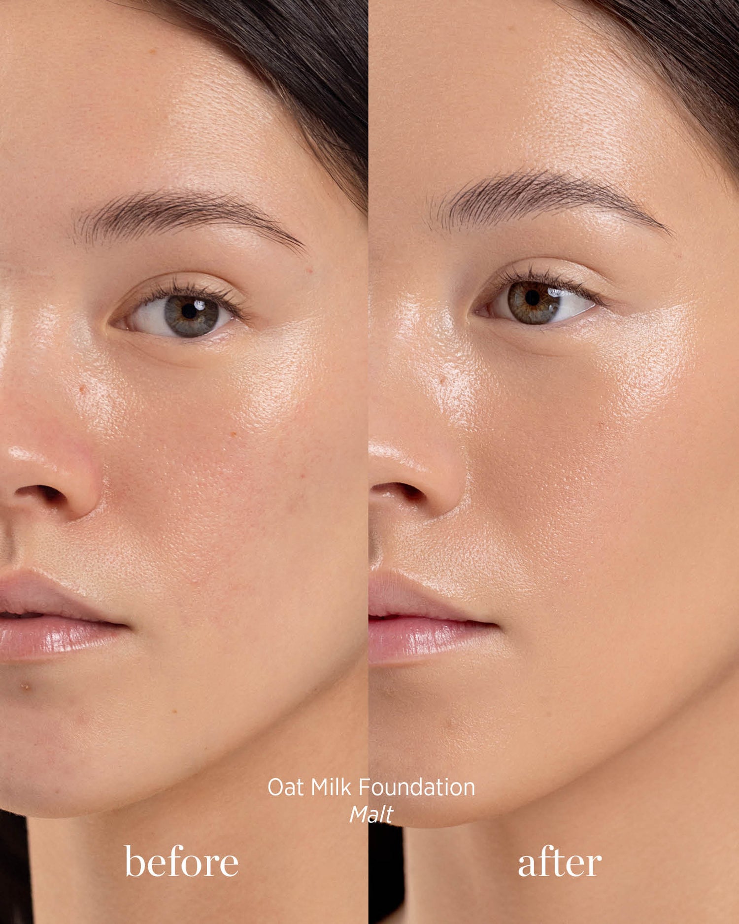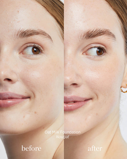 Say goodbye to pore-clogging heavy foundation and embrace a flawless skin finish with the global best-selling natural Oat Milk Foundation. Enhance your natural radiance with a second-skin, seamless, lightweight coverage, while nurturing even sensitive skin types. Embrace the power of natural vegan ingredients such as oat milk, peach & vitamin E to help nourish your skin throughout the day. Give skin a fresh, dewy finish that’s buildable not cakey, so your skin can still breathe. A must-have makeup bag essential, for a daily natural makeup look. Find the right foundation shade among our 16 flexi-shades, with our shade finder..