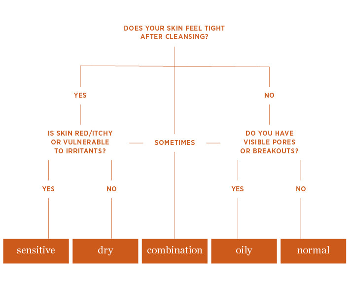 Skin types can generally be determined by a quick observation. Take a few moments to observe your bare face and think about how your skin generally looks & feels day to day.